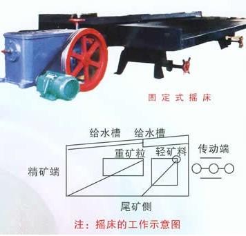 摇床是选别细粒矿石的高效重选设备,广泛用于钨、锡、钽、铌及其他稀有金属和贵金属矿石的选别,也用于铁锰矿石的选别,近年来也有报道用摇床回收磁选厂尾矿中的铁矿物以及选云母等非金属矿物的。 摇床选矿的优点:①富矿比(精矿品位与原矿品位之比)比其他许多选矿方法都高,最大可达100多倍;②一次选别就可获得合格精矿和废弃尾矿;③矿石在床面为扇形分带,便于观察和调节;④产品可根据需要用分割板分开后分别接取...[詳情]