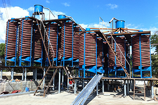 螺旋选矿机概述 玻璃钢螺旋溜槽是综合了螺旋选矿机、玻璃钢螺旋溜槽、摇床、离心选矿机的特点,经冶金部组织有关科研,设计、高校和矿厂等单位进行鉴定通过,认为该设备性能优良,选别指标先进,并获得冶金部科技研究成果奖,现已在有色、黑色金属矿山大量应用。本设备适用于分选粒度0.3-0.02 毫米细料的铁矿、钛铁矿、铬铁矿、硫铁矿、锆英石、金红石、独居石、磷乙矿、钨矿、锡矿、钽矿、铌矿以及具有比重差异的其他有色...