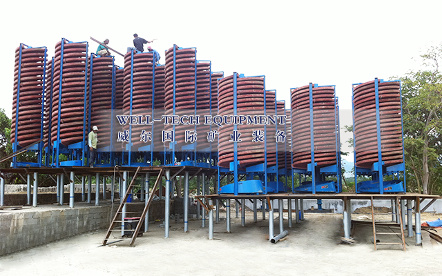 玻璃鋼旋轉(zhuǎn)螺旋溜槽是綜合了螺旋選礦機(jī)、螺旋溜槽、搖床、離心選礦機(jī)的特點(diǎn),新型設(shè)備,是采礦、選礦的最佳設(shè)備,特別是海濱、河畔、砂灘、溪道的砂礦開采更為理想.