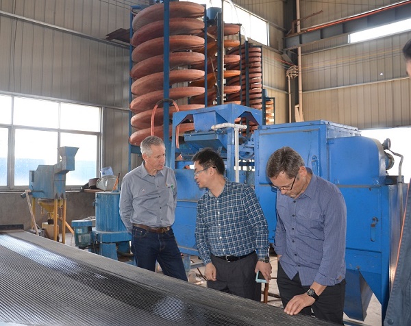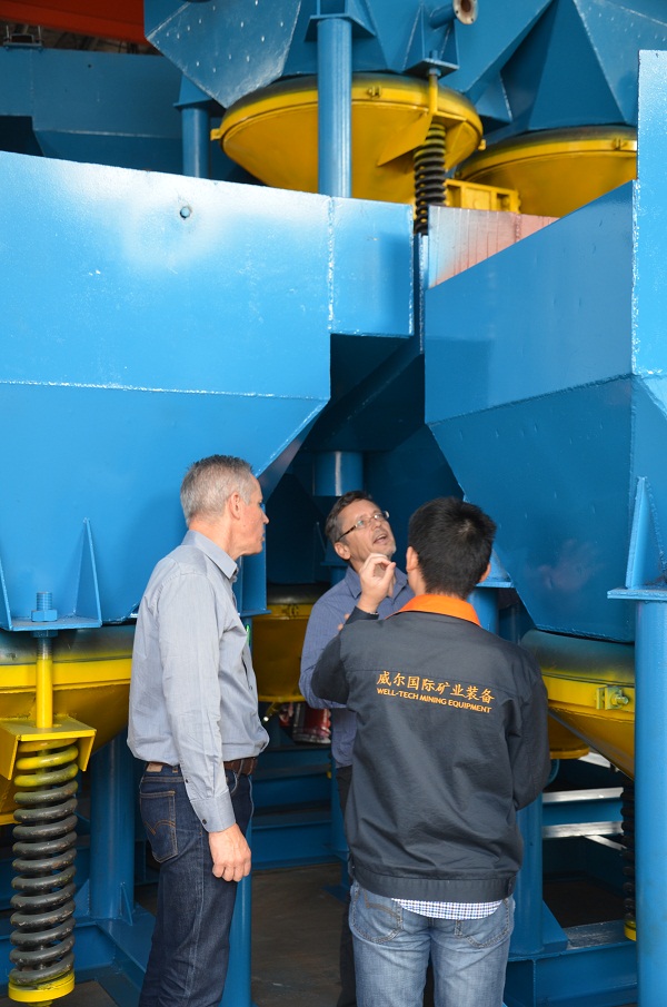 唐納本次來我公司主要考察公司生產(chǎn)的多層搖床、離心選礦機(jī)、滾筒篩、洗礦機(jī)等我公司擁有核心技術(shù)的產(chǎn)品設(shè)備,雙方就下一階段的合作模式、優(yōu)勢(shì)互補(bǔ)等方面展開討論,最終達(dá)成多項(xiàng)合作。
