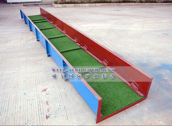 4.處理量大,寬度1米長(zhǎng)度4米的粘金溜槽可每小時(shí)處理5噸原礦,另外我們可根據(jù)客戶要求定制各種不同規(guī)格的粘金溜槽;