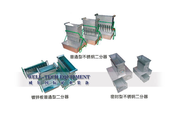 二分器,不锈钢矿物二分器主要用于对矿物、矿粉进行均匀分样用,共有4个规格的二分器供用户选择。