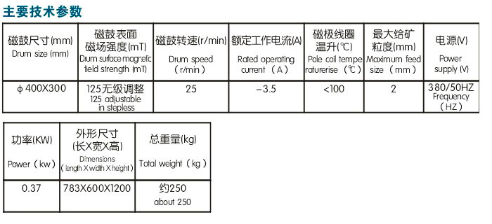 CRSφ400x300電磁濕法鼓式磁選機用于選礦室進(jìn)行強磁針性礦物(如磁鐵礦、磁赤鐵礦、鈦磁鐵礦和磁黃鐵礦)的分選實驗。 用于細(xì)粒級強磁針性物料的處理,特別是從粉狀物料剔除磁性雜質(zhì)和提純磁性礦物。