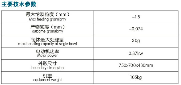 XPM-φ120X3三頭研磨機是一種干法磨細分析樣品的研磨機械 產(chǎn)品名稱: 三頭研磨機型號: XPM120x3研缽直徑: 120mm 磨頭數(shù)目: 3研棒轉(zhuǎn)速:220r/min研缽轉(zhuǎn)速:9r/min 給料粒度:1.5mm產(chǎn)物粒度:0.074mm每缽 處理量:30g電機功率:0.37kw重量:105kg外形尺寸:780x750x500mm產(chǎn)地:石城 三頭研磨機主要技術(shù)參數(shù) 序號 項目 數(shù)值 單位 1 研缽直徑 φ120 mm 2 磨頭數(shù)目 3 個 3 研棒轉(zhuǎn)速 220 r/min 4 研缽轉(zhuǎn)速 9 r/min 5 給料 粒度 -1.5 mm 6 產(chǎn)物粒度 -0.074 mm 7 每缽 處理量 30 g 8 電動機 型號 AO27124 功率 380 W 轉(zhuǎn)速 1400 r/min 9 外形尺寸(長x寬x高) 780x750x500 mm 10 重量 105 kg 研缽、研棒可根據(jù)用戶特殊要求提供陶瓷、剛玉、合金鋼等其它材料的制品。